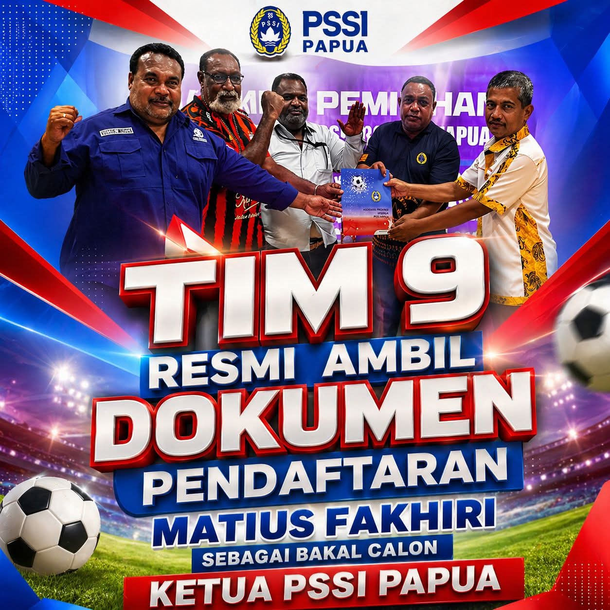 Dukungan untuk Matius Derek Fakhiri( MDF) maju sebagai Ketua PSSI Papua mulai bergerak. Selasa (28/4/2026), Tim 9 resmi mengambil dokumen pendaftaran di Kantor PSSI Provinsi Papua, Jayapura.