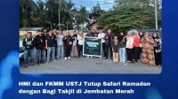 HMI dan FKMM USTJ Tutup Safari Ramadan dengan Bagi Takjil di Jembatan Merah