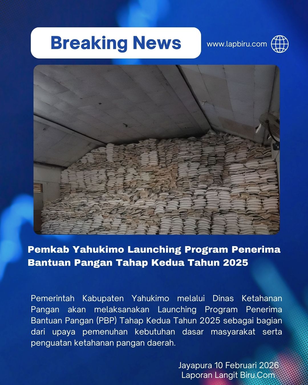 Pemerintah Kabupaten Yahukimo melalui Dinas Ketahanan Pangan akan melaksanakan Launching Program Penerima Bantuan Pangan (PBP) Tahap Kedua Tahun 2025 sebagai bagian dari upaya pemenuhan kebutuhan dasar masyarakat serta penguatan ketahanan pangan daerah.