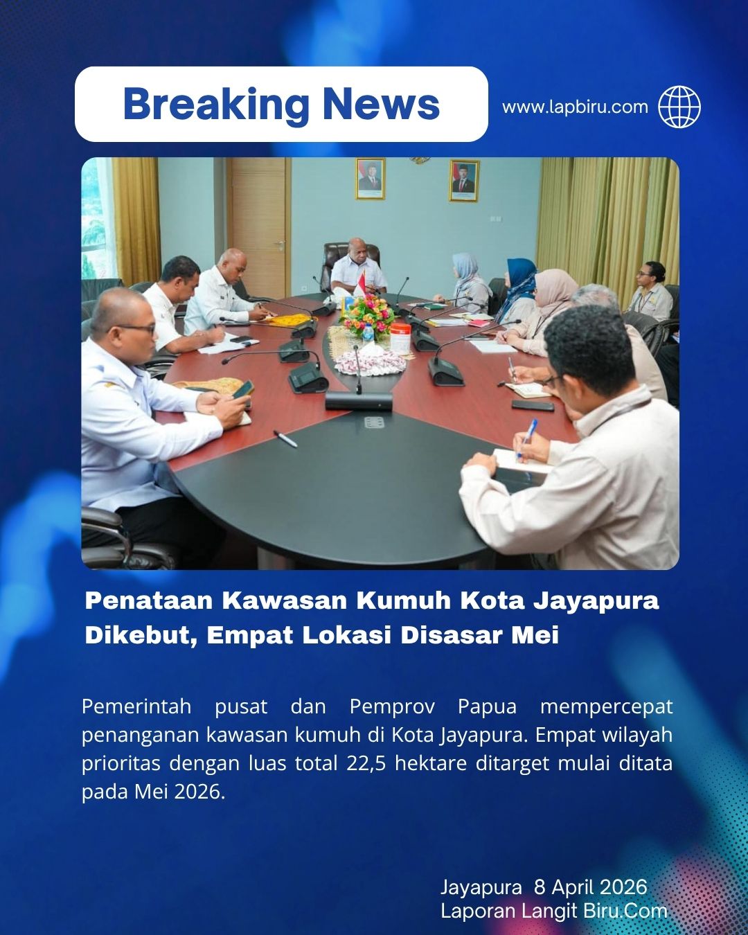 Pemerintah pusat dan Pemprov Papua mempercepat penanganan kawasan kumuh di Kota Jayapura. Empat wilayah prioritas dengan luas total 22,5 hektare ditarget mulai ditata pada Mei 2026.